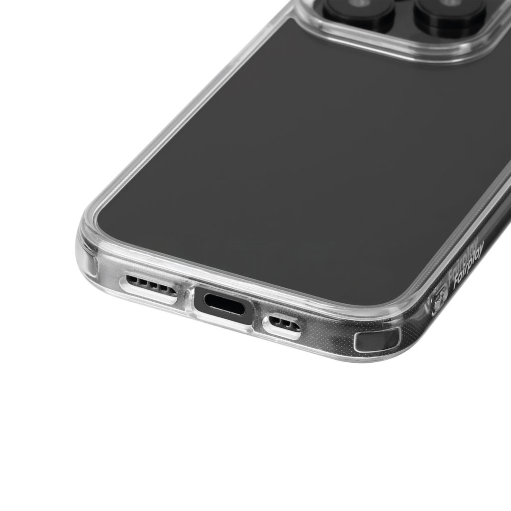 Coque fine et légère en polycarbonate transparent et matériaux souples, avec surface en verre saphir conductrice. Revêtement anti-rayures intérieur/extérieur, résistant au jaunissement. Aimants intégrés pour fixation MagSafe et recharge rapide Qi/Qi2. Design ajusté, agréable en main, compatible avec les fonctions tactiles avancées et les accessoires MagSafe.